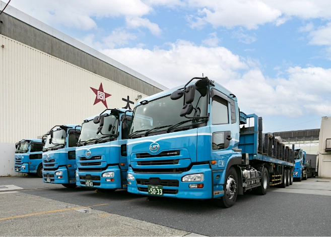 当社は、特殊鋼材専業メーカーとして世界最大級の規模を誇る大同特殊鋼株式会社のグループ会社という強力なアドバンテージを活かしています。直接のコミュニケーションにより、特殊鋼材の特性を深く理解した上で、最も効率的かつ最適な運送方法を積極的にご提案します。特殊鋼材輸送の「正解」を常に追求し、お客様のコスト削減と生産性向上に貢献しています。重量物輸送に最適なトラクタ、トレーラ、大型・普通トラックなど、約130台の車両を保有し、輸送内容に応じた最適な車種を選定。また、当社のドライバーは、運送のプロとして品質と納期に対する高い意識を持っています。運送のプロとして、納入時刻厳守はもちろん、お客様の在庫状況を把握した上での特急出荷にも対応可能です。ドライバー自身、お客様の満足を常にめざすという強い思いを持ち、お客様との絆をいっそう深めていくことにも尽力しています。